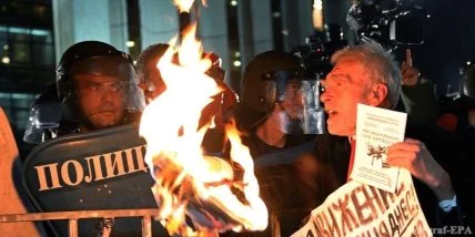 Около 200 протестующих против результатов досрочных парламентских выборов в Болгарии пытались взять штурмом пресс-центр и устроили драку с полицией. Об этом сообщают иностранные СМИ, передает "УНН".