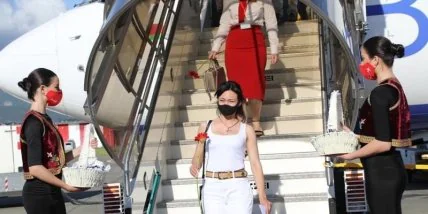 В аэропорту Тираны состоялась торжественная встреча первого после отмены введенных из-за пандемии коронавируса ограничений чартерного рейса, которым на отдых в Албанию приехали туристы из Беларуси.