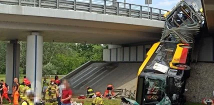 В Варшаве автобус упал с моста и разломился пополам: есть погибшие и пострадавшие