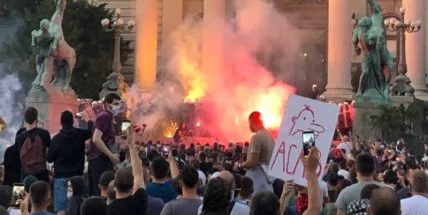 В Белграде протестующие продолжают манифестацию у здания Народной скупщины, они требуют смены состава кризисного штаба по борьбе с COVID-19 и улучшения работы системы здравоохранения.
