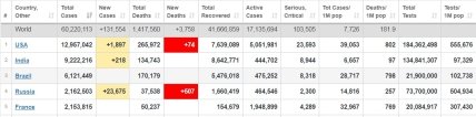 Отметим, что по данным сайта Worldometer, который ведет ежедневный подсчет заражений коронавирусом в мире, всего на планете на данный момент насчитывается более 60 миллионов 220 тысяч больных. Лидерами антирейтинга по количеству заражений в мире являются США (почти 13 миллионов зараженных), Индия (более 9 миллионов больных), Бразилия (более 6 миллионов случаев заражения), Россия и Франция (более 2 миллионов заражений).