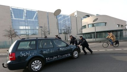 Стоит отметить, DER SPIEGEL ранее писал, что эта же машина была замечена в аналогичной акции в феврале 2014 года. Тогда с машиной, разрисованной с обеих сторон посланиями, мужчина врезался в забор Федерального канцелярии в Берлине. По словам представителя полиции, мотив неясен. Лозунг, с одной стороны, был направлен против изменения климата: «Изменение климата больше не убивает людей». На другой стороне было признание в любви: «Николь, я люблю тебя».