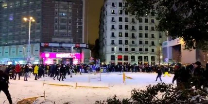 Мадрид утопает в снегу, но испанцы не унывают: масштабные снежные игрища сняли на видео