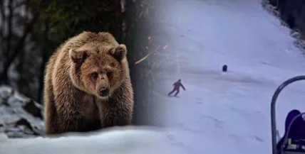 На одном из горнолыжных спусков в Румынии турист едва не попал в лапы медведя, который преследовал его пока он спускался.