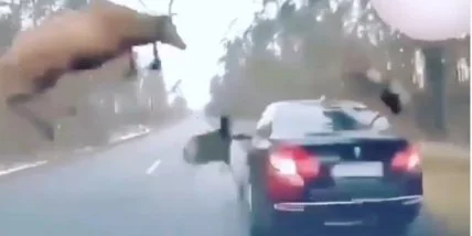 Судя по ролику сам олень испугался не меньше. Вряд ли он предполагал, что выйдя из лесу, встретит на своем пути такое препятствие.