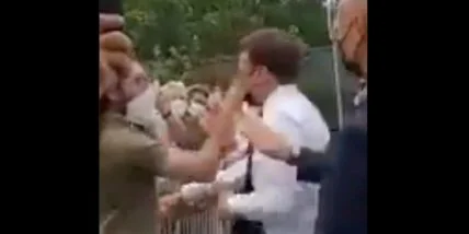Во врем того, как ударить Макрона, он выкрикнул: "Монжуа Сен-Дени (боевой клич феодального ополчения Франции, - Авт.), долой Макрона!".
