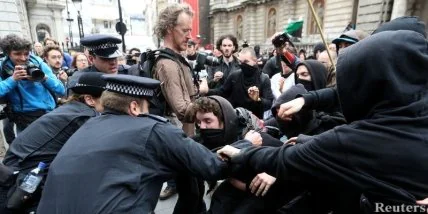 В центр британской столицы в настоящее время стягиваются дополнительные подразделения полиции в связи с антикапиталистической демонстрацией.