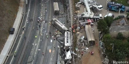 Авария произошла неподалеку от железнодорожной станции города Сантьяго-де-Компостела - столицы испанского автономного сообщества Галисия, в среду вечером. В результате ЧП все вагоны поезда перевернулись, 1 вагон был полностью разрушен.