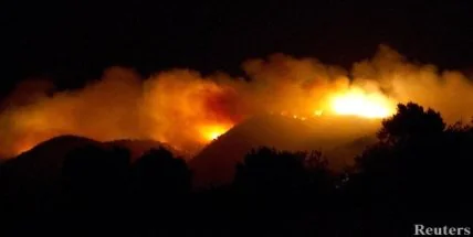 Как сообщили сегодня местные власти, за ночь огонь охватил 450 га леса и продолжает распространяться. Около 200 человек были эвакуированы.