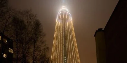На мачте-антенне телебашни водружена "рождественская звезда" - мощный лазерный прожектор. Его свет виден за 20 км от Вильнюса. А сверху донизу натянуты гирлянды из тысяч лампочек и мигающих блесток общей длиной более 6 км.