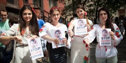 Отмечается, что инициатором мероприятия стала певица и общественная активистка Руслана Лыжичко. Сообщается, что представители диаспоры вышли на марш в таких городах, как Чикаго, Нью-Йорк, Вашингтон, Филадельфия, Бостон, Хьюстон, Торонто. Целью акции был протест против участия РФ в миротворческой миссии на востоке Украины. Протестующие также призвали мировое сообщество поддержать Украину и признать факт войны России против Украины. Напомним, ранее представители украинской диаспоры передали Госпогранслужбе Украины гуманитарную помощь.