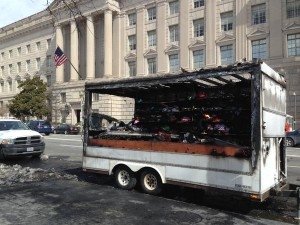 Позже выяснилось, что причиной шума стал пожар, который произошел в одной из торговых лавок, расположенных поблизости.