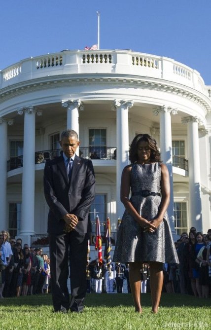 Президент США Барак Обама, его жена Мишель, вице-президент США Джо Байден и сотрудники Белого дома почтили память жертв теракта 11 сентября.