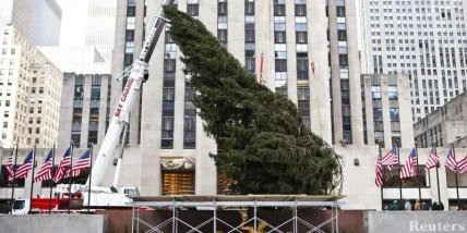 Пышное хвойное дерево высотой 24,3 м разместили в самом центре американского мегаполиса. Норвежская ель, возраст которой составляет около 80 лет, была доставлена в Нью-Йорк на длинномерном грузовике из городка Маунт-Олив /штат Нью-Джерси/. Там она росла на участке 76-летнего иммигранта из Венгрии Джо Балку.