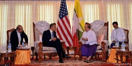 Обама, которого в понедельник встречали полные энтузиазма толпы на улицах бывшей столицы, Янгона, встретился с президентом Тейном Сейном - членом хунты, правившей в бывшей Бирме 49 лет и сложившей полномочия в 2011-м.