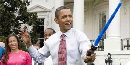 В ролике присутствует часть выступления Обамы на пресс-конференции, где он выражает свое желание посмотреть последнюю, недавно вышедшую на экраны часть фильма "Звездные Войны".