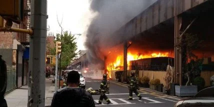 "Пожарные прибыли на место возгорания на пересечении Парк-авеню и 118-й улицы в восточном Гарлеме. Горят строительные подсобные помещения и оборудование под проложенным поверх полотном метро", - уточнила служба в своем аккаунте в Twitter.