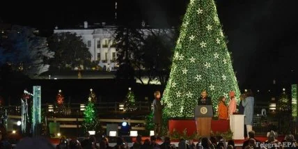 Президент США Барак Обама в четверг вечером зажег огни на Национальной елке.