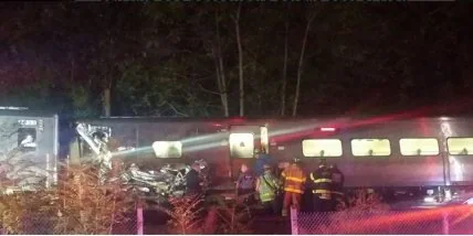 По предварительным сведениям, пассажирский поезд врезался в рабочий поезд, находившийся на путях. Три из 12 вагонов пассажирского состава сошли с рельсов. Не сообщалось, двигался ли рабочий поезд в момент столкновения.