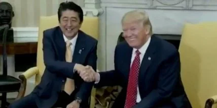 Дональд Трамп сжимал руку премьера Японии 19 секунд во время фотосессии.