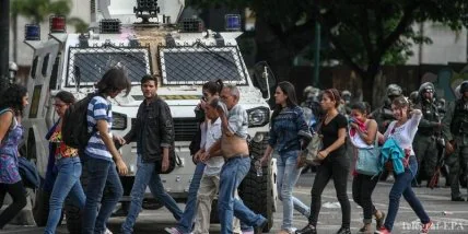 В столице Венесуэлы Каракасе бронетраспортер врезался в толпу демонстрантов, травмирован по меньшей мере один молодой человек.
