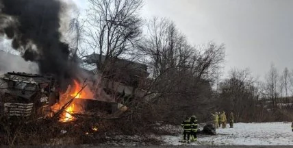 В США грузовой поезд загорелся после схода с рельсов, в результате чего пострадали двое людей.