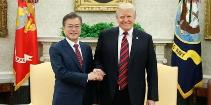 Южнокорейский президент Мун Чжэ Ин призывает Дональда Трампа и Ким Чен Ына к переговорам.