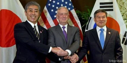 В американском ведомстве сообщили, что решение приостановить запланированные на декабрь обучения Vigilant Ace приняли министр обороны США Джеймс Маттис и министр обороны Южной Кореи Чон Кен Ду, которые встретились в Сингапуре в пятницу.