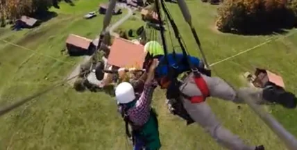 Турист случайно полетел на дельтаплане не пристегнутым (Видео)