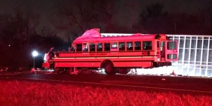 Около Блумингтона, что в штате Иллинойс, грузовик, ехавший по встречному движению, врезался в школьный автобус с баскетбольной командой девушек.