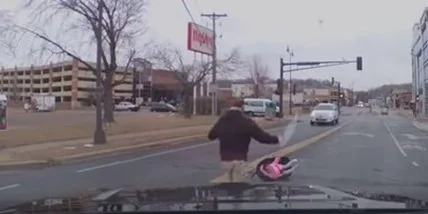В США ребенок в автокресле выпал из машины на полном ходу (Видео)
