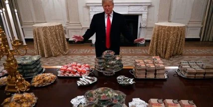 Президент США Дональд Трамп был вынужден самостоятельно заказывать и оплачивать пиццу, бургеры и картошку фри на прием в Белом доме 14 января, организованный для футболистов Clemson Tigers, победителей национального чемпионата среди студентов. Трампу пришлось сделать так из-за того, что в связи с частичным прекращением работы правительства "шатдауном", сотрудники Белого дома, которые должны были бы заниматься вопросом угощения гостей, находящихся в неоплачиваемых отпусках, передает радио Свобода. Как сообщают американские СМИ, президент США, который является любителем фастфуда, заказал еду из Mcdonald's, Burger King и Wendy's. Комментируя свой выбор, Трамп заявил, что это "замечательная американская еда". "У нас есть пицца, 300 гамбургеров и много-много картофеля фри, все наша любимая еда", – сказал Трамп журналистам.