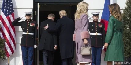 Президент США Дональд Трамп и премьер-министр Чехии Андрей Бабиш "забыли" про своих жен во время встречи в Белом доме. Сообщается, что забавный инцидент произошел на церемонии встречи, когда президент Дональд Трамп вместе с Меланией ждали на пороге Белого дома чешского премьера Андрея Бабиша и его супругу.