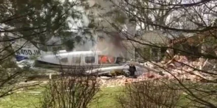 Двухмоторный самолет упал на жилой дом в американском городе Мадейра, штат Огайо.