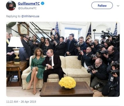 К примеру, на одной из фотографий пользователи добавили фото Дональда Трампа, который сидит возле Мелании на диване в домашней одежде с куском пиццы и пультом в руках. На другом снимке оказался и Владимир Путин, и даже совершенно несчастного вида Киану Ривз.