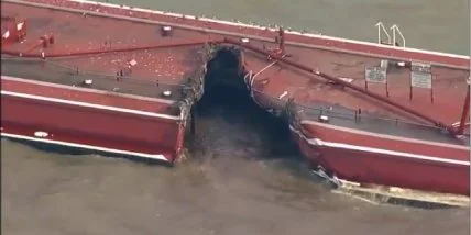В США танкер столкнулся с баржами, произошла большая утечка нефтепродуктов.