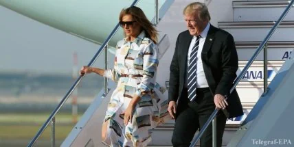"Готовимся с первой леди Меланией к посадке в Японии. С нетерпением ждем встречи со всеми!" - написал ранее в субботу президент США в твиттере.