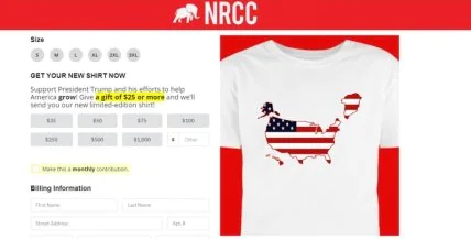 Подобную футболку лимитированной серии можно заказать на сайте Национального комитета Республиканской партии (NRCC), сделав пожертвование на сумму от 25 долларов.