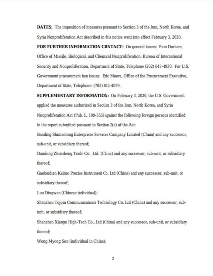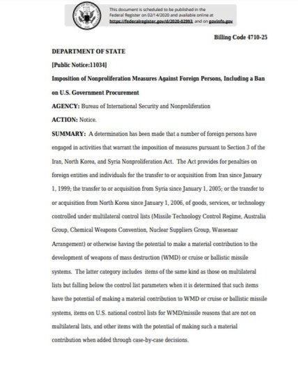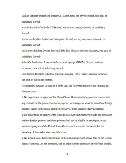 Кроме того, санкции наложены на шесть компаний и двух физических лиц из Китая, одну фирму из Ирака и одну — из Турции.