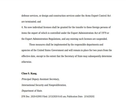 Об этом говорится в документе Госдепа, размещенном в федеральном реестре США.