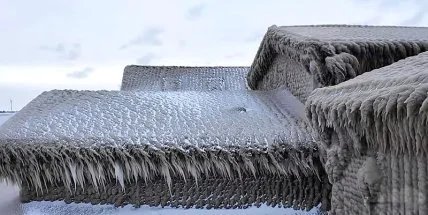 Штормовая погода на Великих Озерах сковала близлежащие к побережью дома льдом.