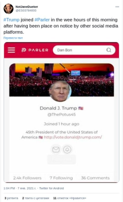 При этом, Трамп не остановися полностью, после блокировки его аккаунтов завел страницу в другой соцсети, где продолжил писать провокационные посты.