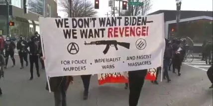 Толпы людей по всему Портленду прибегли к насилию в день инаугурации Байдена, около 14:00 у Революционного зала на юго-востоке Портленда собралась толпа из 150 человек. Менее чем через час несколько полицейских на велосипедах прибыли на стоянку и были быстро окружены десятками людей до прибытия подкрепления, сообщила полиция Портленда.