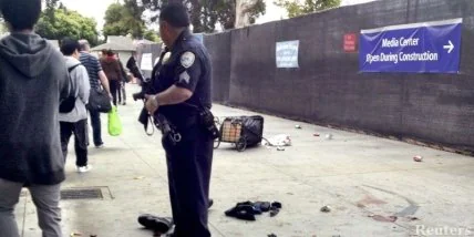 Стрелок был вооружен автоматом, был одет в бронежилет и каску. Он вел беспорядочную стрельбу по прохожим, автобусам, машинам и соседним строениям на бульваре Пико. Несколько погибших обнаружены в жилых домах.