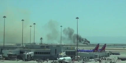 Американские телеканалы в эти минуты передают картинку с места ЧП, на которой видны обломки самолета, лежащие на взлетно-посадочной полосе. Над ними поднимается столб густого дыма.