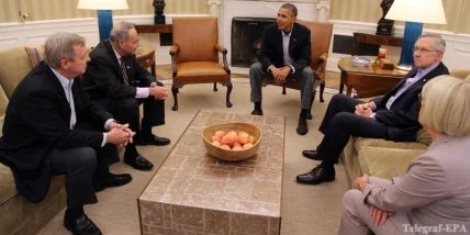 Встреча продолжалась более часа. С Обамой встречались сенаторы Гарри Рид, Ричард Дурбин, Чак Шумер и Пэтти Мюррей. Подробности встречи не сообщаются. Напомним, что переговоры между демократами и республиканцами переместились в сенат после того, как оппозиционные республиканцы, контролирующие палату представителей конгресса, не смогли найти компромисс на переговорах с президентом.