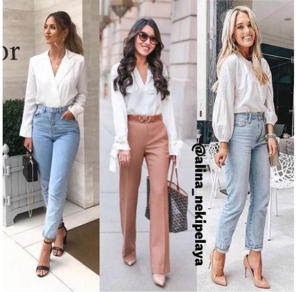 Лук может быть женственным и в джинсах и в брюках, главное подача и немного деталей: прическа, макияж, аксессуары.