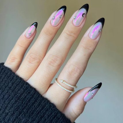 Если вы не против добавить красок в свой маникюр, то экспериментируйте с лаками для ногтей. Цвет выбирайте на свой вкус. Чтобы не сделать безвкусный нейл-дизайн, попробуйте освежит звездной эстетикой привычный французский маникюр.