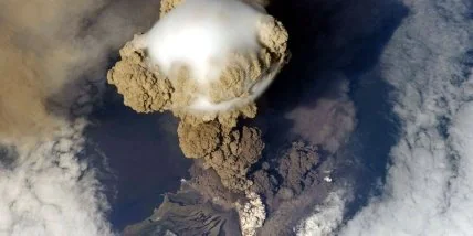 Ученые представили удивительное видео извержения вулкана, которое было снято с орбиты планеты.