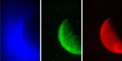 Отредактированные фотографии показывают планету с высоты 36,5 тысяч километров в ультрафиолетовом диапазоне. ''Синее'' nизображение демонстрирует, что происходит от солнечного света, рассеянного на атомарном водороде в облаках, простирающихся на тысячи километров над поверхностью Марса. ''Зеленое'' — от рассеяния света на атомарном кислороде, яркое красное пятно на последнем изображении — от рассеяния света на полярных льдах.